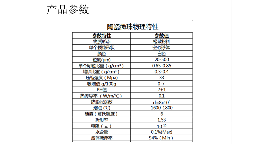 5、耐腐蝕性強(qiáng):陶瓷微珠主要為硅酸鋁成份,可在各種有機(jī)溶液及酸、堿溶劑中保持穩(wěn)定;