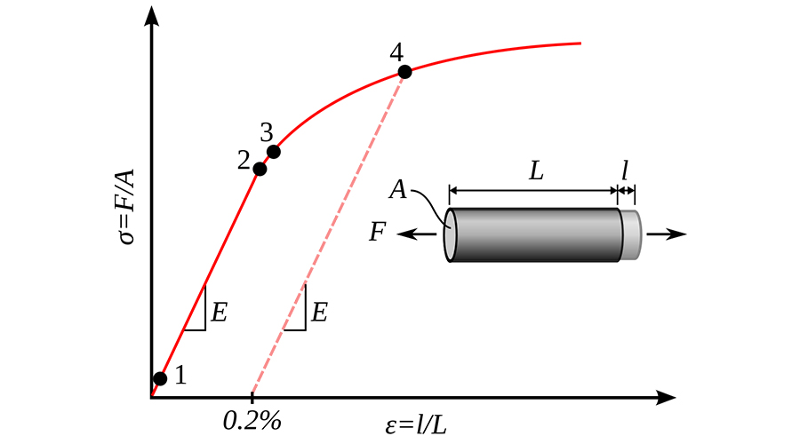 當金屬材料所承受的外力值超過材料本身的彈性極限時,即使撤銷外力,材料仍保持明顯的塑性形變而無法自行恢復,我們將金屬的這種現(xiàn)象稱作屈服。當材料承受的外力到一定程度時,其形變程度不再隨外力的減小而下降,而是產(chǎn)生明顯的塑性形變不可恢復,我們把金屬材料產(chǎn)生屈服時的最小外力值稱為下屈服極限。一旦金屬零件所受外力超過其屈服極限,就會產(chǎn)生塑性形變,導致零件不可恢復、永久失效。