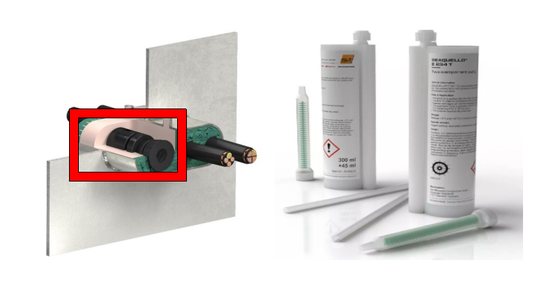 GEAQUELLO?E234用于GEAQUELLO?E 950密封系統(tǒng)中電纜和管道穿透的改造模塊,新船制造時(shí),放置于密封系統(tǒng)中,作為今后線纜改造的預(yù)留位置,新增電纜時(shí),用鉆頭將模塊中間鉆通,電纜穿過(guò),再用GEAQUELLO E234T密封劑 將電纜周?chē)沫h(huán)形間隙密封。