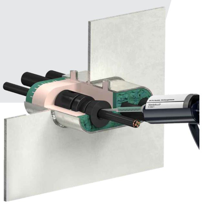 GEAQUELLO? E 950船舶多重管線貫穿密封系統包含9種產品,其中三種產品為艦船防火系統的核心部分,其余6種產品可根據使用環境按照需求來選擇。