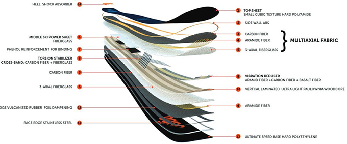 在制造滑雪板時,僅添加了1%重量的Haydale石墨烯樹脂機(jī)械增強(qiáng)填料,滑雪板組件為50% UHMWPE,20%碳纖維,15%木芯,15%鋼