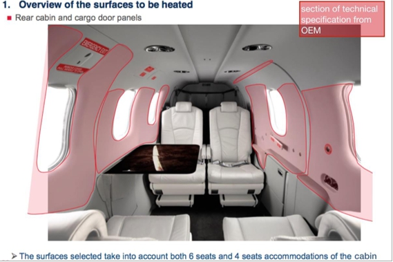 目前,飛機(jī)艙室內(nèi)部加熱系統(tǒng)使用的還是空調(diào)系統(tǒng),坐在窗口附近的乘客通常會(huì)有低溫的感覺,也包括艦船上的艙室中腳腿部寒涼感受,都是整個(gè)艙室溫度不夠均衡導(dǎo)致。Villinger研發(fā)的LiteHeat?艙室內(nèi)部..